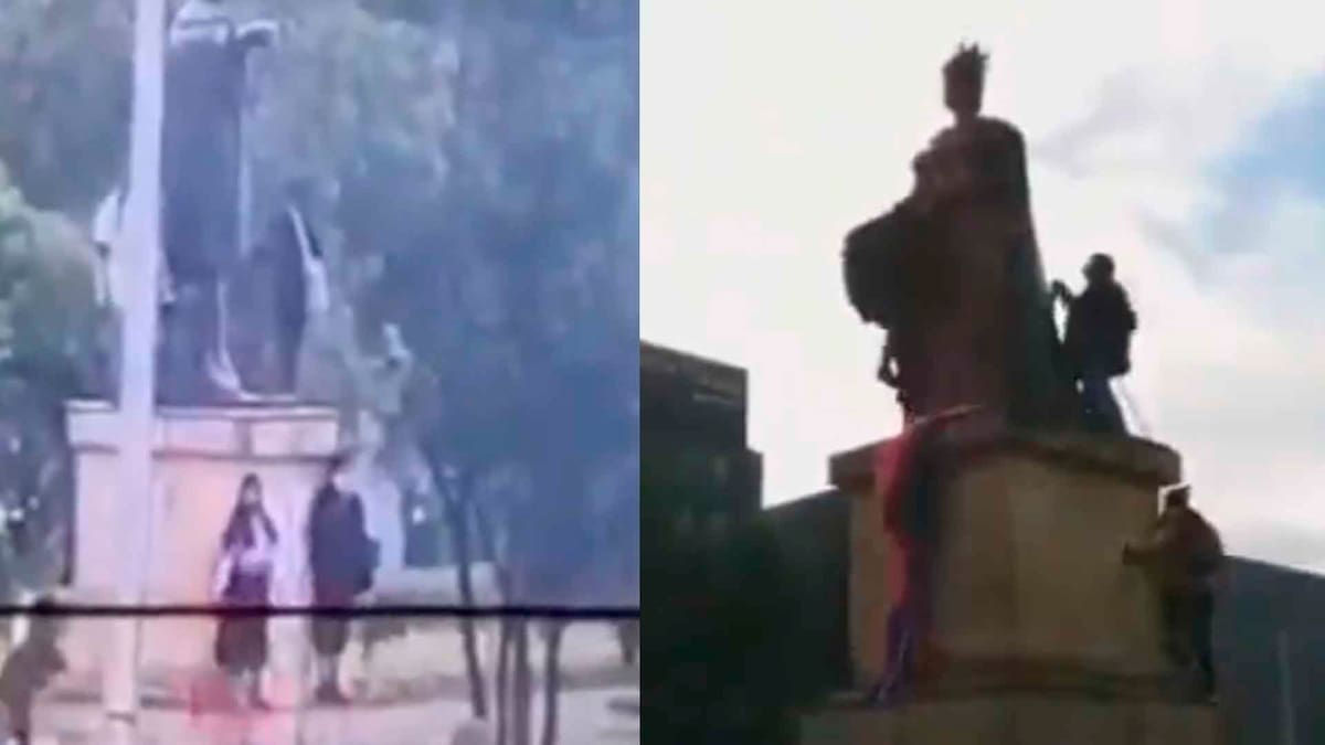 La Secretaría de Gobierno de la Alcaldía de Bogotá informó que uniformados de la Policía tuvieron que intervenir en la zona para evitar que esta población lograra su acometido de tumbar el monumento.