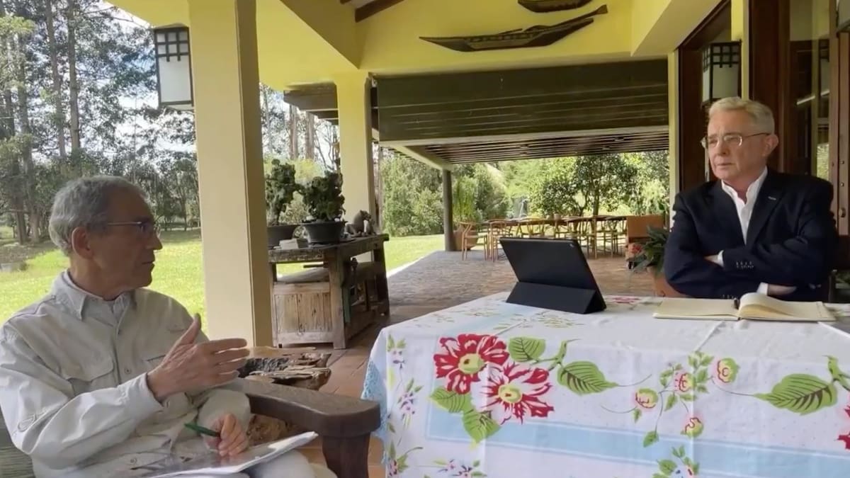 Llovía a cantaros. Amenizado por el sonido de la lluvia y el cantar de aves y diversos animales que residen en la finca de Álvaro Uribe Vélez en Antioquia transcurrió el encuentro entre este y la Comisión de la Verdad.