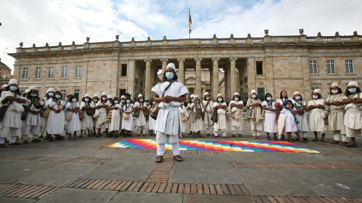Un centenar de indígenas de la Sierra Nevada de Santa Marta acompañaron este martes a los mamos mayores de ese territorio ancestral en la Plaza de Bolívar de Bogotá, algunos en su primera salida de sus resguardos hacia la capital, para pedir respeto por la autonomía de gobierno en sus culturas.
