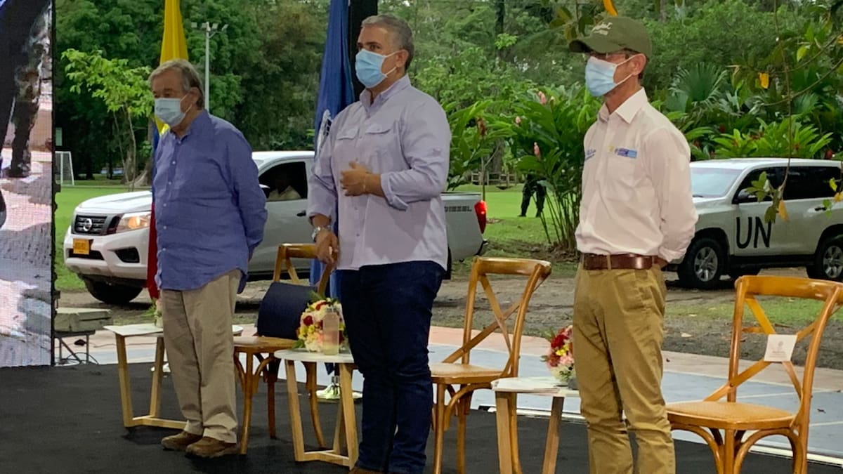 Desde Apartadó, Antioquia, en el preámbulo de la conmemoración de los cinco años del acuerdo de paz, el secretario general de la ONU, António Guterres, afirmó que la paz de Colombia pasa necesariamente por la paz de sus territorios y regiones.
