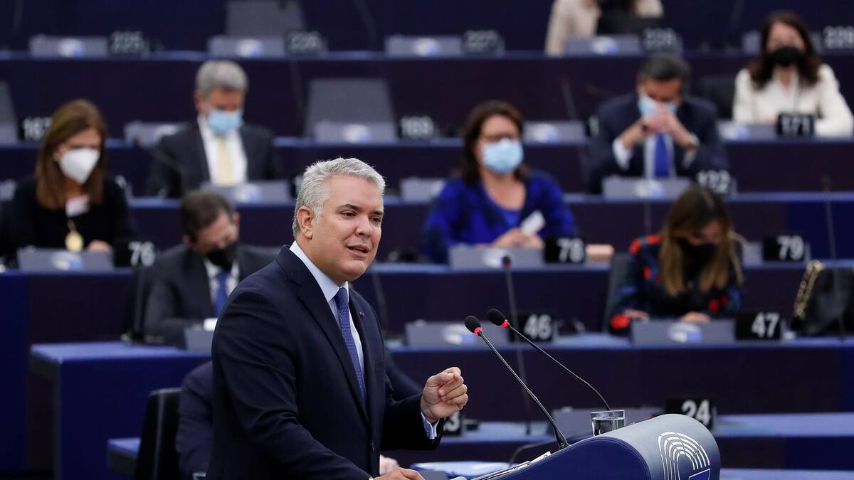 Durante su intervención este martes en la plenaria del Parlamento Europeo, en Estrasburgo, Francia, el presidente Iván Duque presentó un balance de su gobierno en temas como la defensa de la democracia, el medio ambiente, la migración y el componente social de equidad.