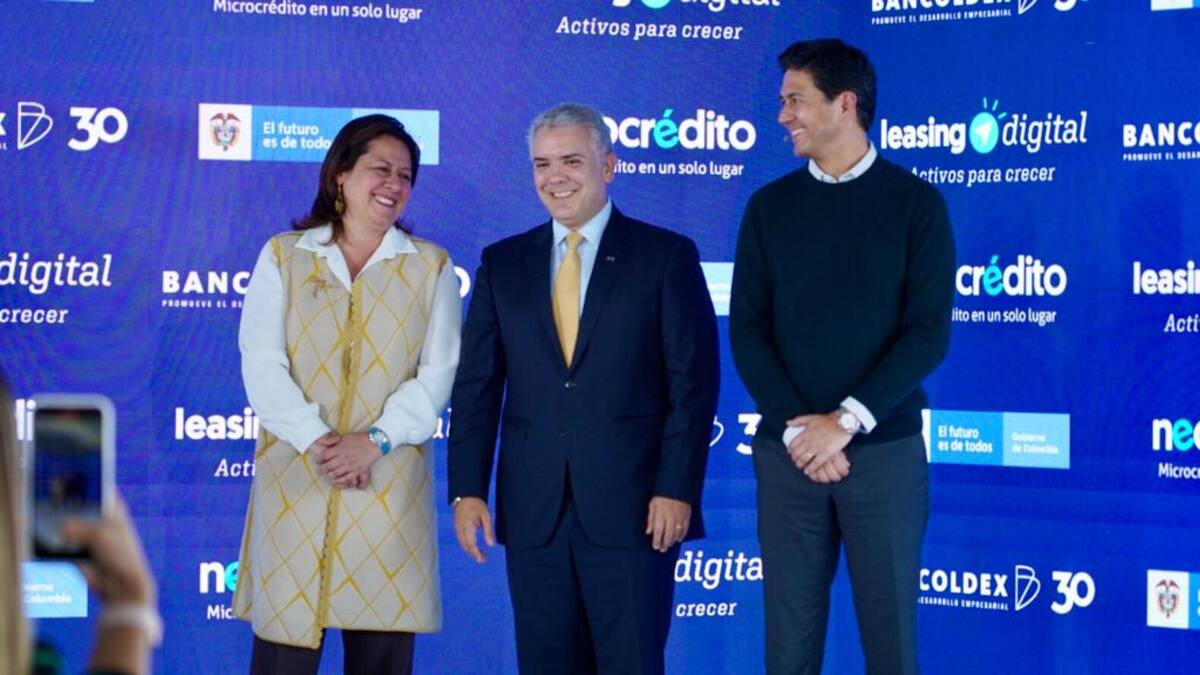El presidente Iván Duque estuvo presente en el lanzamiento de las plataformas de Bancóldex, ‘Neocrédito’ y ‘Leasing Digital’, las cuales están dirigidas a las necesidades de acceso al crédito para las micro, pequeñas y medianas empresas del país.