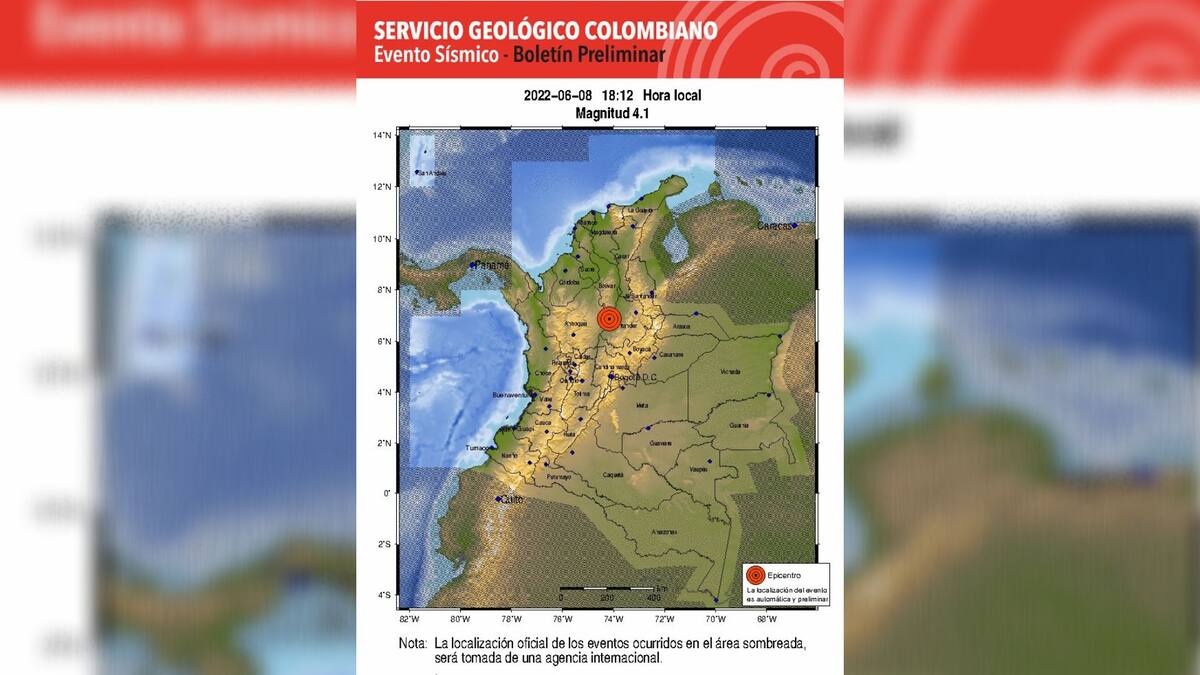 El temblor sacudió gran parte de Santander y algunas zonas de Antioquia.
