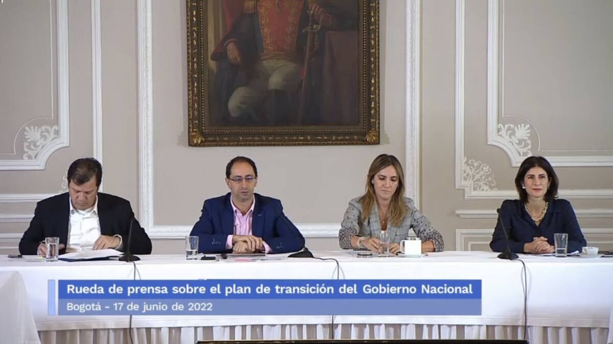 El ministro de Hacienda, José Manuel Restrepo, es el encargado de liderar el Plan de Transición, acompañado por la directora del Departamento Nacional de Planeación (DNP), Alejandra Botero Barco; el director del Departamento Administrativo de la Presidencia de la República (Dapre), Víctor Muñoz, y la jefe de Gabinete, María Paula Correa.