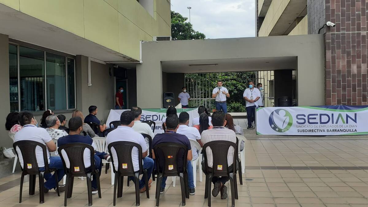 Trabajadores a nivel nacional de la Dirección de Impuestos y Aduanas Nacionales adelantaron una jornada de protesta este jueves para exigir al Gobierno Nacional que cumpla con el decreto para estructurar la planta de empleo temporal.