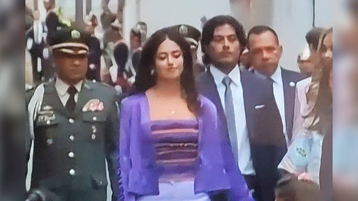 Sofía Petro llegó vestida de morado a la posesión de su padre, Gustavo.