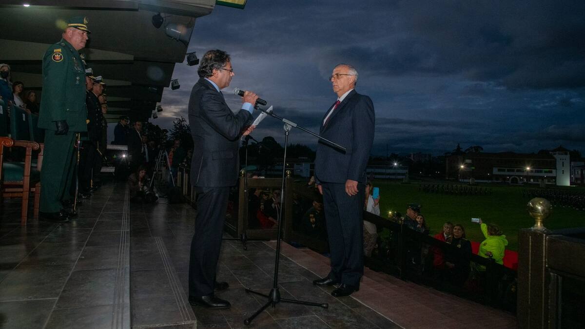 El presidente Gustavo Petro y el ministro de Defensa, Iván Velásquez, encabezaron este sábado en la Escuela Militar José María Córdova el reconocimiento de tropas y la posesión del general Hélder Giraldo como comandante de las Fuerzas Militares, del general Luis Ospina como comandante del Ejército, del vicealmirante Francisco Cubides como comandante de la Armada y del general Luis Córdova como comandante de la Fuerza Aérea.