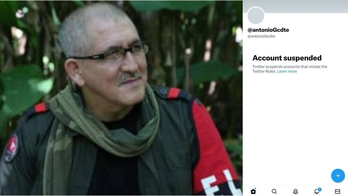 Twitter suspendió este martes la cuenta del máximo comandante del Ejército de Liberación Nacional (ELN), Eliécer Chamorro, alias 'Antonio García', luego de que amenazara a la periodista María Alejandra Villamizar por una columna que publicó en el diario español El País criticando a ese grupo armado.