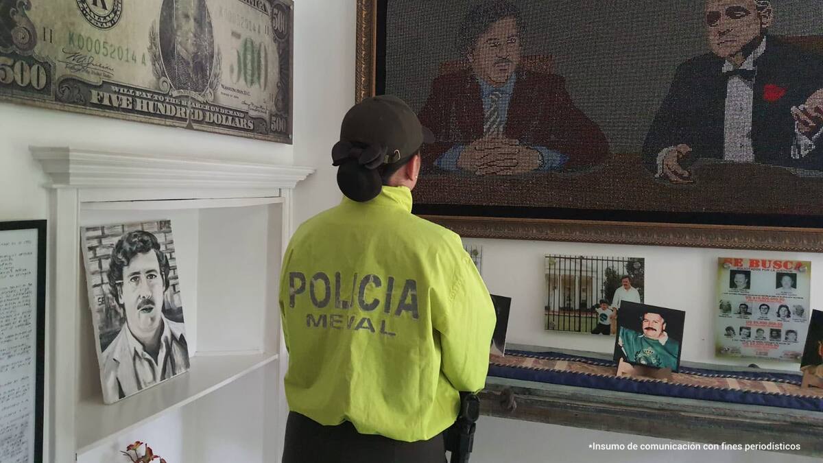 En la propiedad, en la que vive alias El Osito, hermano del capo, se exhiben artículos alusivos al Cartel de Medellín.