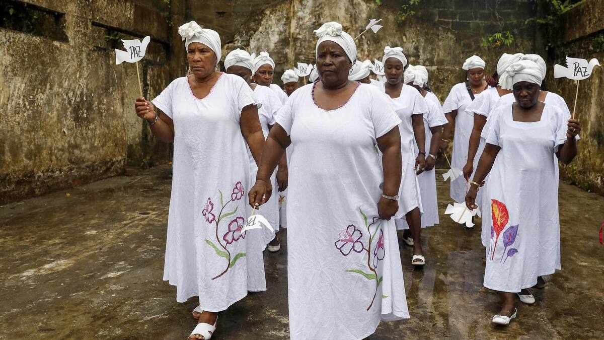 Además, un grupo de mujeres Cantadoras de Pogue dedicaron sus letras a la paz con palomas blancas de papel en sus manos: 'Las víctimas de Bojayá no paramos de cantar, para mitigar el dolor y que nos dejen en paz'.