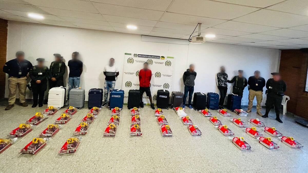 Migración Colombia capturó a cinco ciudadanos dominicanos en el Aeropuerto El Dorado de Bogotá que transportaban unos 215 kilos de cocaína y que pretendían llevar hasta su país ocultos en el equipaje de bodega, informaron las autoridades.
