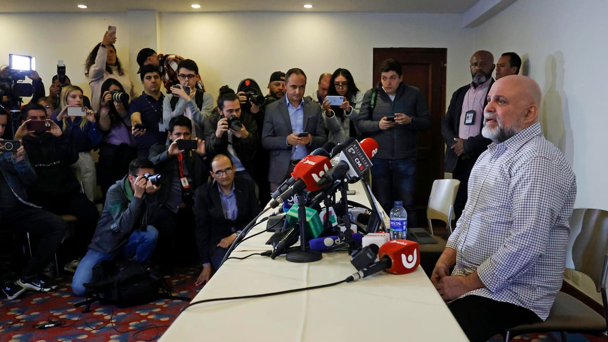 El ex comandante paramilitar Salvatore Mancuso ofreció este jueves una rueda de prensa en la capital del país, un día después de haber salido libre tras 18 años preso dentro y fuera del país.