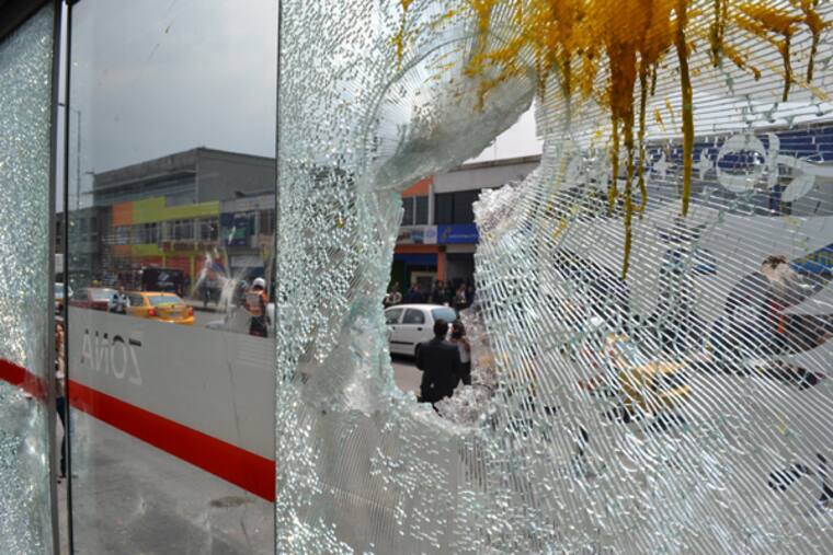 El ataque fue lanzado, según testigos, por enfurecidos propietarios de tiendas ubicadas en el San Andresito de la 38 en Bogotá, que era objeto de una inspección de agentes de la Dian.