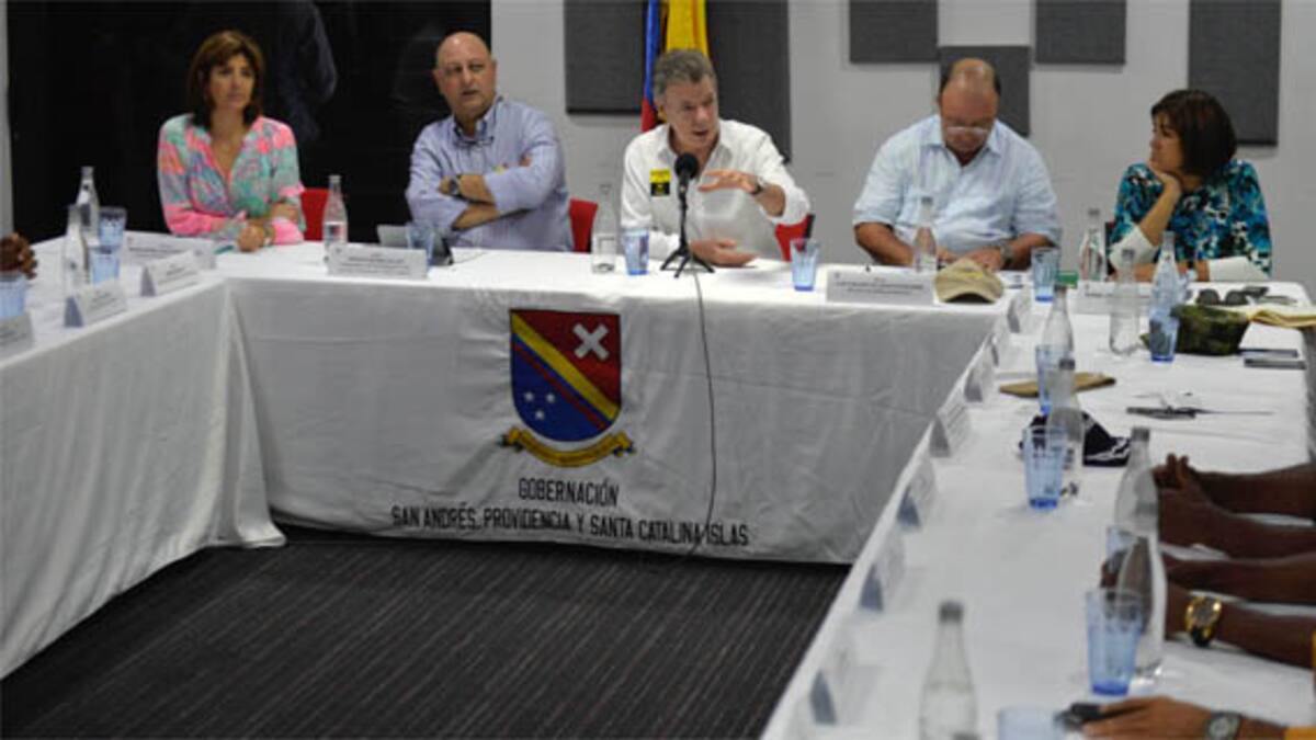 En la visita a San Andrés, Santos se reunió con el gobernador de ese departamento, Ronald Housni Jaller; el alcalde de Providencia, Bernardo Bent, así como con el líder de la autoridad raizal, Walt Hayes, a quienes les reiteró el compromiso del Gobierno Nacional ante la actual coyuntura.