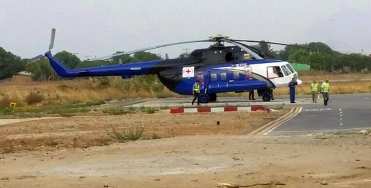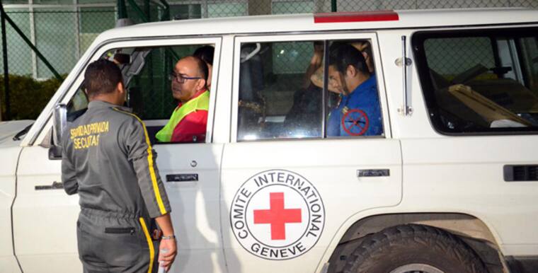 En el aeropuerto de Valledupar, además del helicóptero, estaban ubicados al lado de la pista vehículos con el emblema de la Cruz Roja.