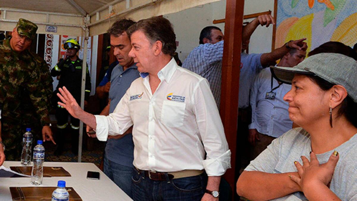 El presidente Juan Manuel Santos expresó su solidaridad a las familias de las 58 personas que hasta el momento han fallecido, así como a quienes perdieron sus viviendas y enseres por causa de la tragedia ocasionada por el desbordamiento de la quebrada La Liboriana de este municipio.