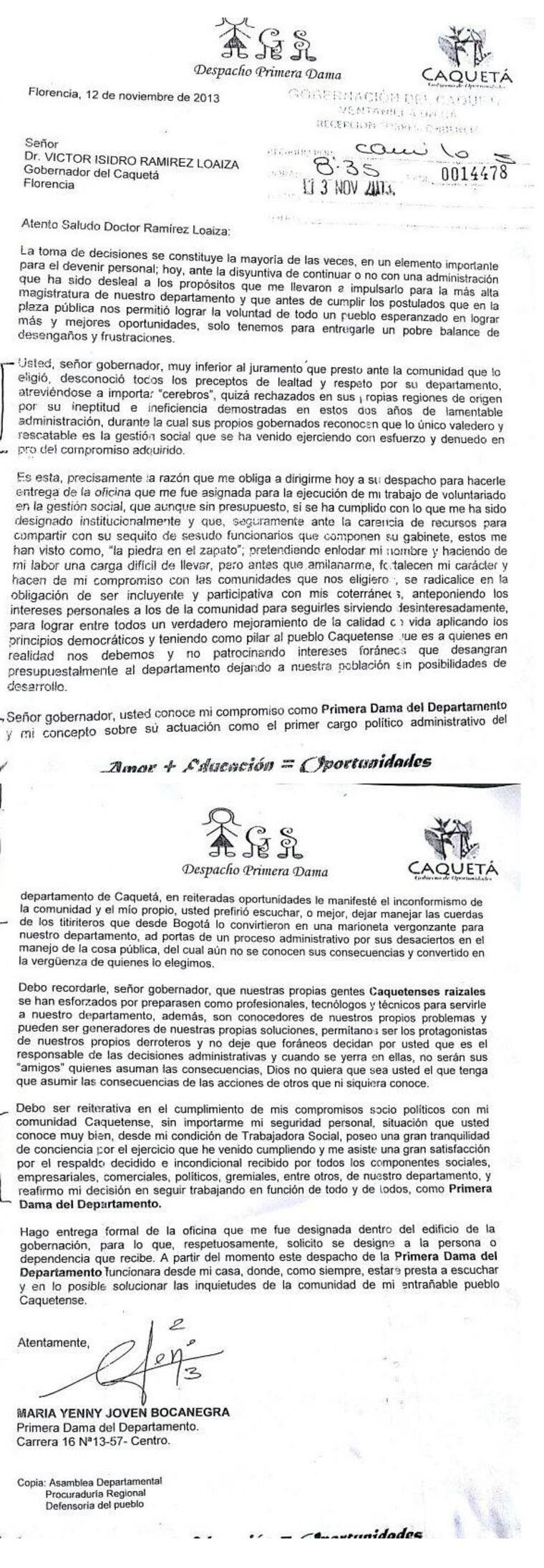 María Yenny Joven Bocanegra, primera dama del departamento de Caquetá, está causando conmoción en la región debido a una acalorada discusión con su esposo, el gobernador Víctor Ramírez Loaiza.
