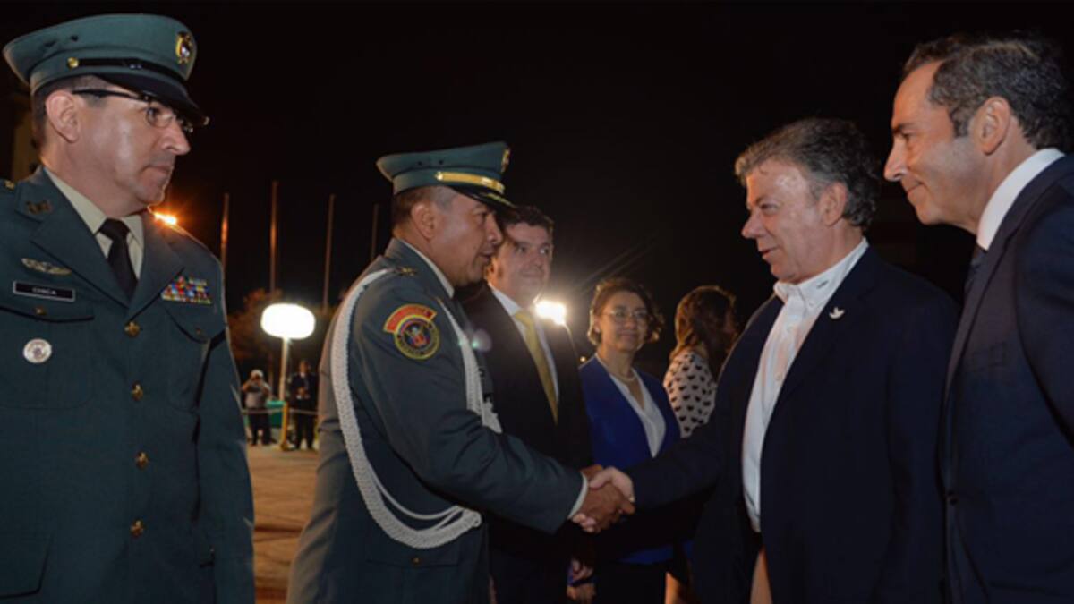 El presidente Juan Manuel Santos arribó en la noche de este domingo a Guatemala y fue recibido por el canciller Carlos Raúl Morales en la base principal de la Fuerza Aérea Guatemalteca.
