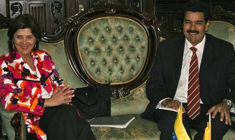 La canciller María Ángela Holguín, y los ministros de Defensa y Comercio, Rodrigo Rivera y Sergio Díaz Granados se reunieron hoy en Caracas con el canciller venezolano Nicolás Maduro.
