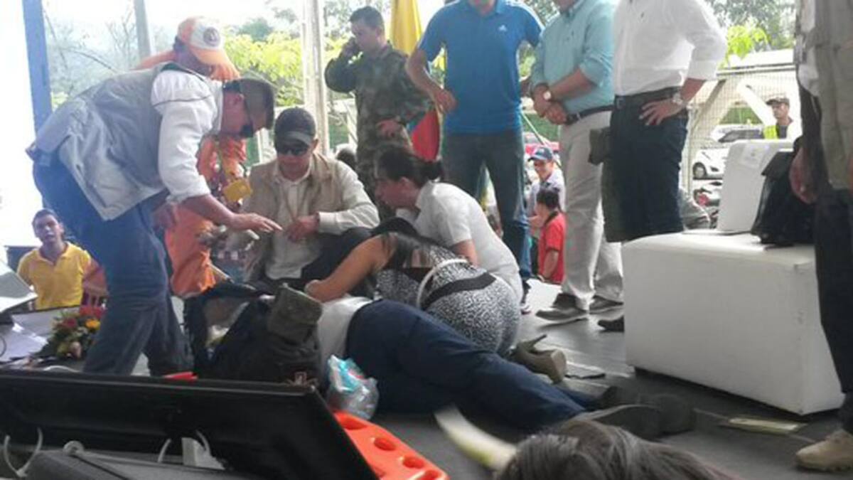 Germán Vargas Lleras, de 53 años, sufrió un desmayo y, según los presentes y las mismas evidencias fotográficas y de video, estuvo unos segundos inconsciente, antes de recuperarse para luego ser trasladado en una ambulancia por su equipo de seguridad a la clínica Carlos Ardila Lulle.