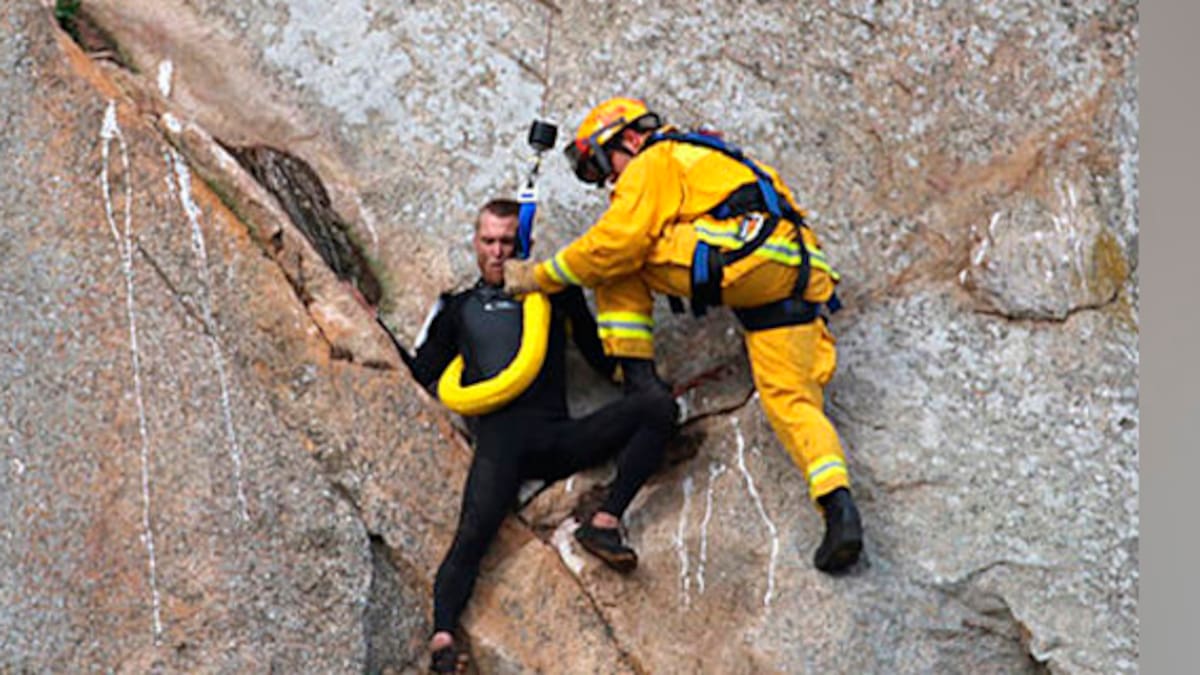 Los rescatistas llamaron al helicóptero y Gailey descendió con un cable para izar a Banks de la estrecha cornisa, con las hélices del aparato girando cerca del acantilado y el océano salpicando a los dos hombres.