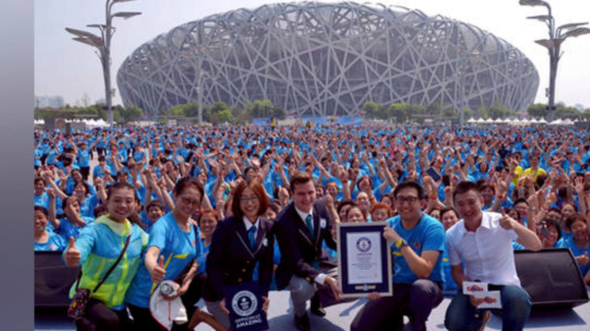En total, 31.697 personas en Beijing, Shangai y otras cuatro ciudades lograron una nueva marca el sábado ejecutando una coreografía al unísono durante más de cinco minutos, explicó el cibersitio de Guinness.