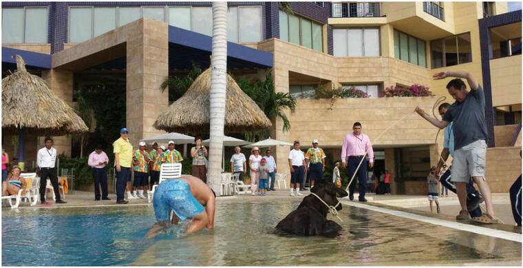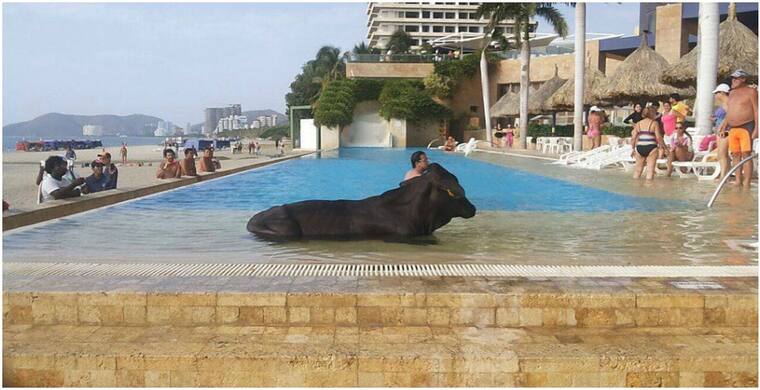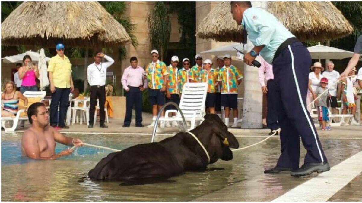 ¿Qué hace una vaca en una piscina?.Esa fue la pregunta que se hicieron los huéspedes de un reconocido hotel, ubicado en Belo Horizonte, en Santa Marta, cuando la vaca entró muy oronda y decidió darse un chapuzón.