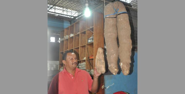 El tamaño del ñame, según él, radica en que el hueco donde lo sembró se abonó mucho y la tierra en agradecimiento lo hizo crecer.