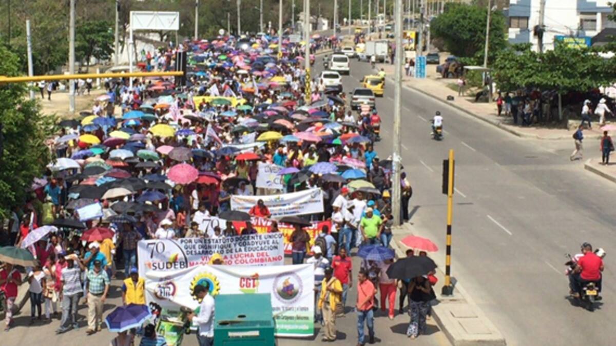 Con normalidad se cumple el primer día de paro nacional de docentes en varias ciudades capitales del Caribe colombiano. Barranquilla, Cartagena y Montería registran las manifestaciones más multitudinarias.