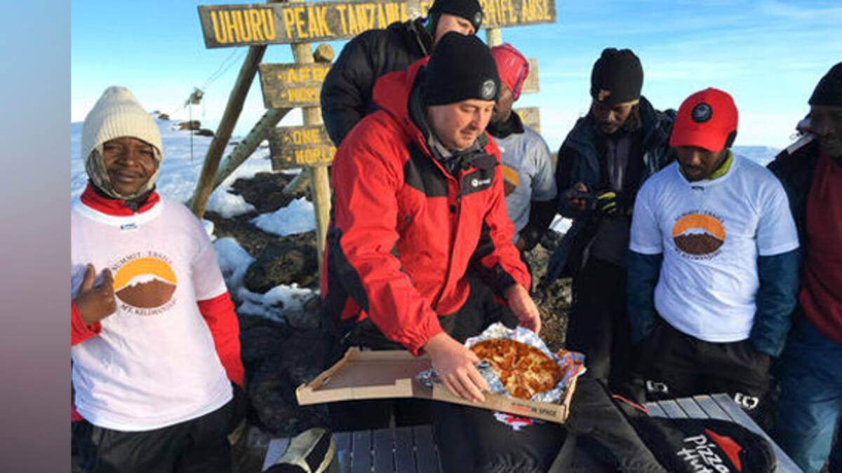 El ascenso duró varios días y terminó el pasado 8 de mayo. Un equipo de empleados y Randall Blackford, el gerente general de Pizza Hut África lideraron la entrega.