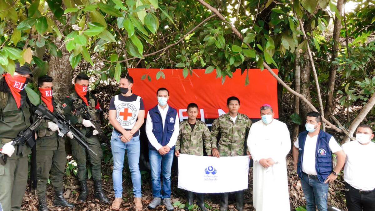 'El Comité Internacional de la Cruz Roja recibió en zona rural de Norte de Santander a dos soldados que estaban en poder del Ejército de Liberación Nacional desde hace 13 días. En la misión humanitaria participaron integrantes de la Iglesia católica y la Defensoría del Pueblo', informó el organismo en un comunicado.
