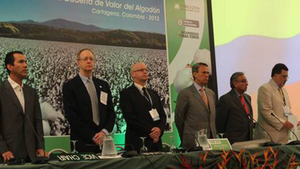En el acto inaugural de la reunión plenaria del ICAC estuvieron, en la mesa principal, Francois Schmidt, presidente del Comité Permanente del ICAC; Terry Towsend, director ejecutivo del ICAC; Marío Rodríguez, presidente del Consejo Directivo de Conalgodón; Cesar Pardo Villalba, presidente ejecutivo de Conalgodón y Luis Humberto Martínez Lacouture, Gerente del ICA.