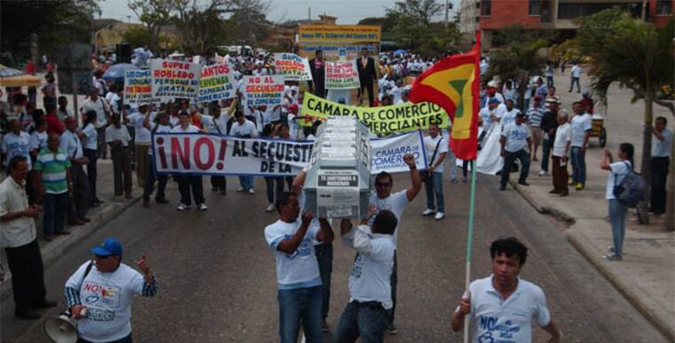 A ritmo de champeta, con el estribillo 'suelten la Cámara, suéltenla...' y con un ataúd por delante, un nutrido grupo de comerciantes —no tan grande como se esperaba— expresó su descontento desde la Plaza de la Paz hasta la sede norte de la entidad gremial.