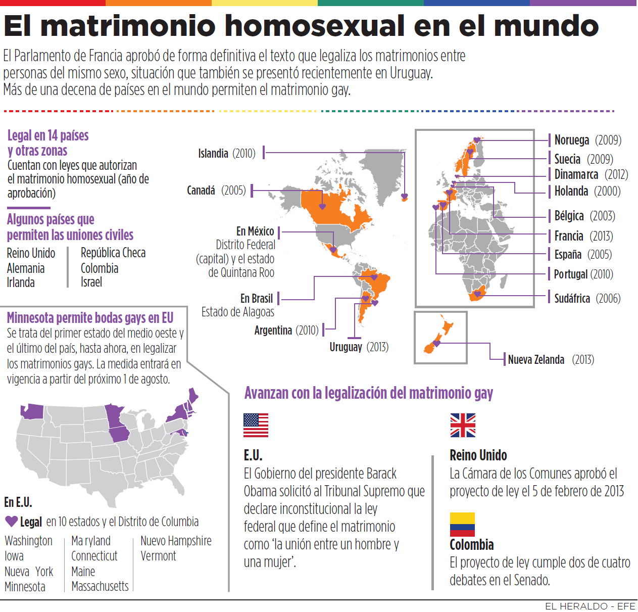 El Parlamento de Francia aprobó de forma definitiva el texto que legaliza los matrimonios entre personas del mismo sexo, situación que también se presentó recientemente en Uruguay.