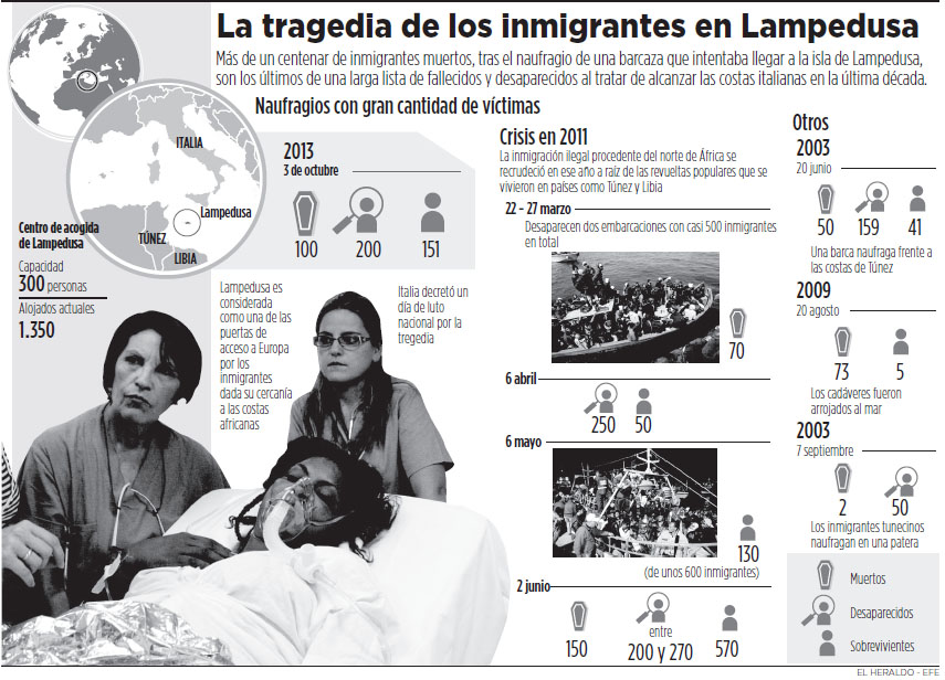 De los 34 muertos, aún se desconoce la nacionalidad, se unen a los 339 cuerpos recuperados tras el naufragio del pasado 3 de octubre a pocos kilómetros de la isla siciliana de Lampedusa. (ver infografía)