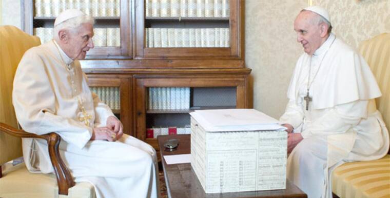La imagen de estos dos pontífices, ambos vestidos de blanco, ha quedado para la historia.