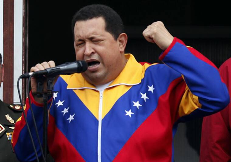 Vestido con ropa deportiva con los colores de Venezuela, Chávez hizo acto de presencia en el balcón presidencial junto a su hija Rosa, el ministro de Defensa, general Henry Rangel Silva, y algunos de sus colaboradores.