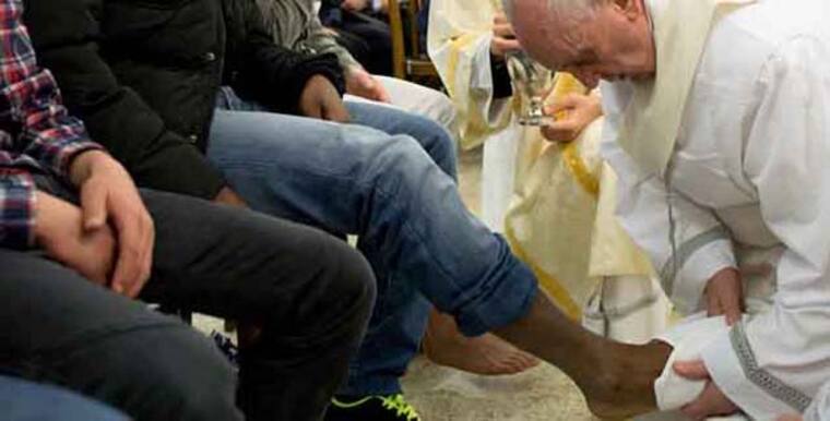 Francisco ofició en la cárcel romana de menores de Casal del Marmo la Misa de la Cena del Señor del Jueves Santo, durante la cual lavó los pies a doce jóvenes allí recluidos, entre ellos dos muchachas, una católica y otra musulmana, imitando lo hecho por Jesús con los doce apóstoles.
