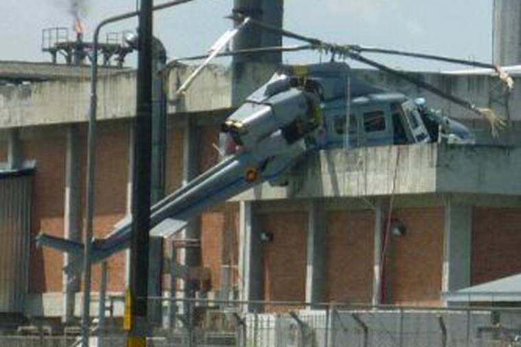 El helicóptero tipo Bell 412 con matrícula FAC 005, de la Fuerza Aérea Colombiana (FAC), cayó en una tubería al pie de unos tanques de la llamada unidad de balance de la refinería, manifestó el coronel Willian Arias, comandante de la Policía del Magdalena Medio.