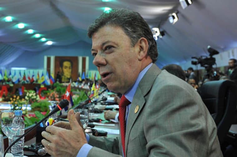 El presidente Juan Manuel Santos advirtió que la paz es un asunto interno de Colombia y lo resolverán los colombianos, en respuesta a comunicaciones enviadas por los grupos guerrilleros a la cumbre de jefes de estado y de gobierno de la Comunidad de Estados Latinoamericanos y Caribeños (Celac), que se celebró en la capital venezolana.