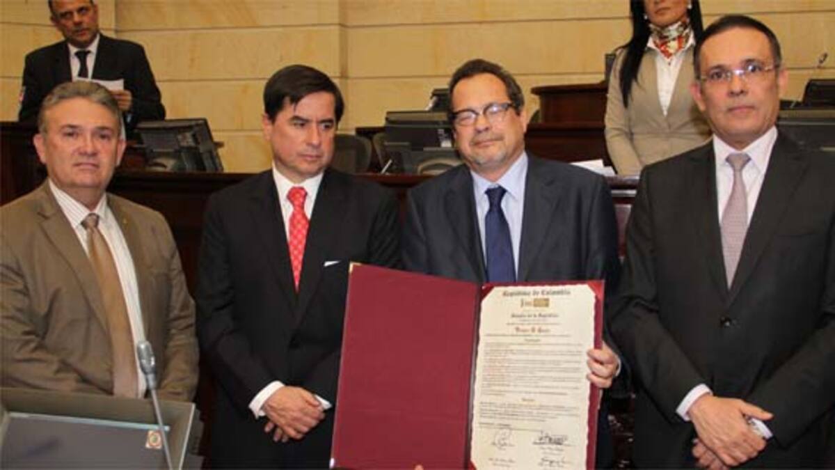 El senador Efraín Cepeda fue el encargado de otorgar la distinción al director de esta casa editorial, Marco Schwartz Rodacki.