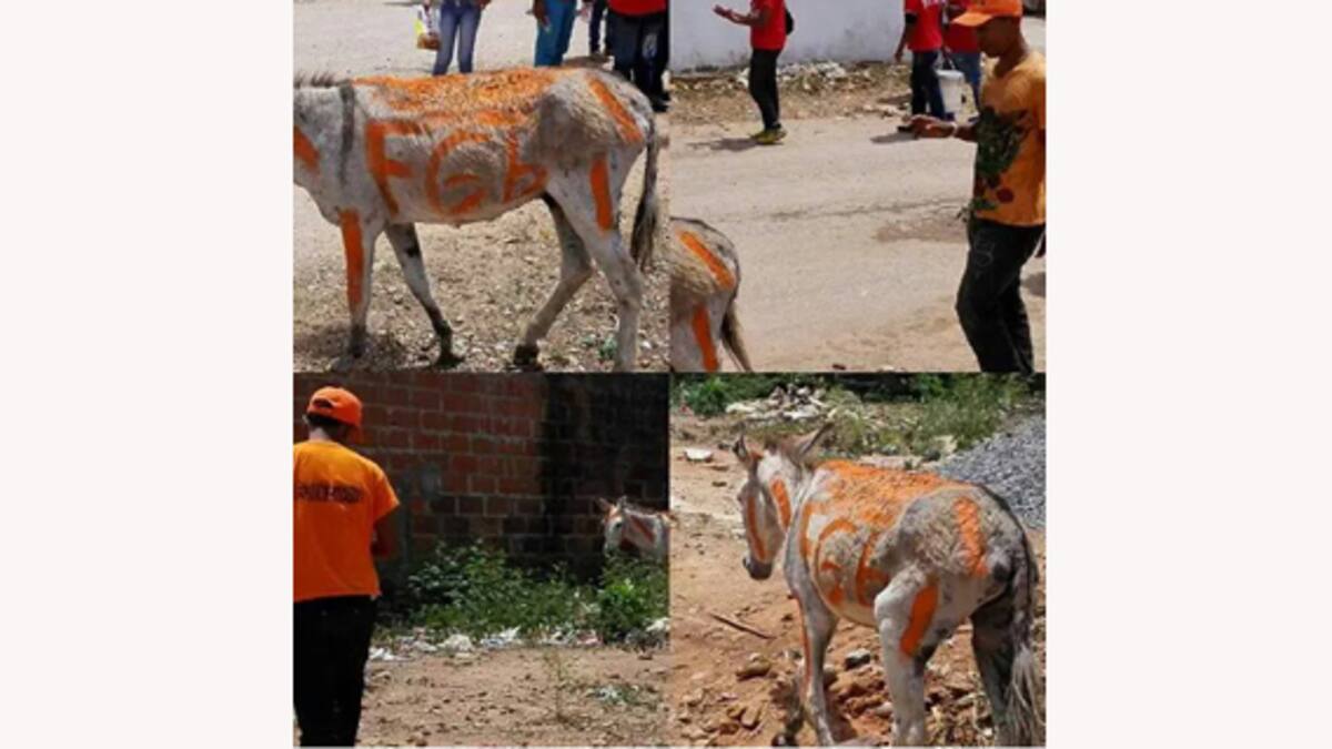 El animal, al que le marcaron con pintura las letras FBG, pero usando el color naranja, similar a la que lucen los seguidores de la campaña de Fabio Velásquez, aspirante a la Alcaldía de Riohacha por el partido Cambio Radical.