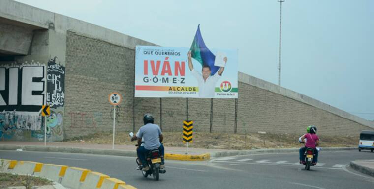 Soledad. Glorieta del puente de la calle 30 con Soledad 2000. Esta valla de Iván Gómez, candidato a la Alcaldía por el Partido de La U, se encuentra en la zona verde ubicada en la base del puente, tiene permiso del Edumas.