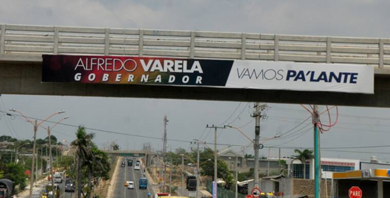 Barranquilla. Valla de Alfredo Varela, candidato a la Gobernación del Atlántico, ubicada en el puente peatonal de la Circunvalar en la entrada al barrio Las Granjas.
