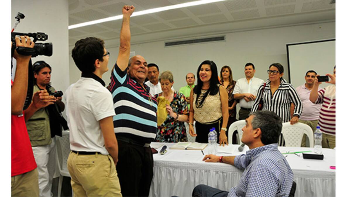 Nájera alzó el puño al aire con el nombre del ganador, que fue leído por Ana Josefa Velazco de Bustos, delegada del Consejo Nacional Electoral. 'José Cadena' , leyó Velazco y el joven de 23 años, estudiante de Economía de la Universidad del Norte, se fundió en un abrazo de júbilo con su equipo de abogados. 'José, José, José' vitoreaban, mientras que hacia el otro lado del salón un impotente Carbó se dirigía a la salida del recinto.