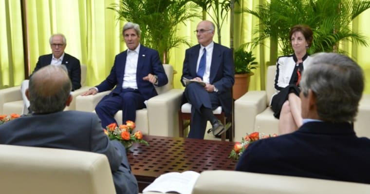 Después de una histórica reunión entre el Secretario de Estado de Estados Unidos, John Kerry, y las delegaciones del Gobierno y las Farc que pactan la paz en La Habana, el Gobierno norteamericano entregó un nuevo respaldo a los diálogos y asumió dos compromisos puntuales para el posconflicto: brindar apoyo para la seguridad de los desmovilizados de la guerrilla y cooperar para una campaña nacional de desminado humanitario.