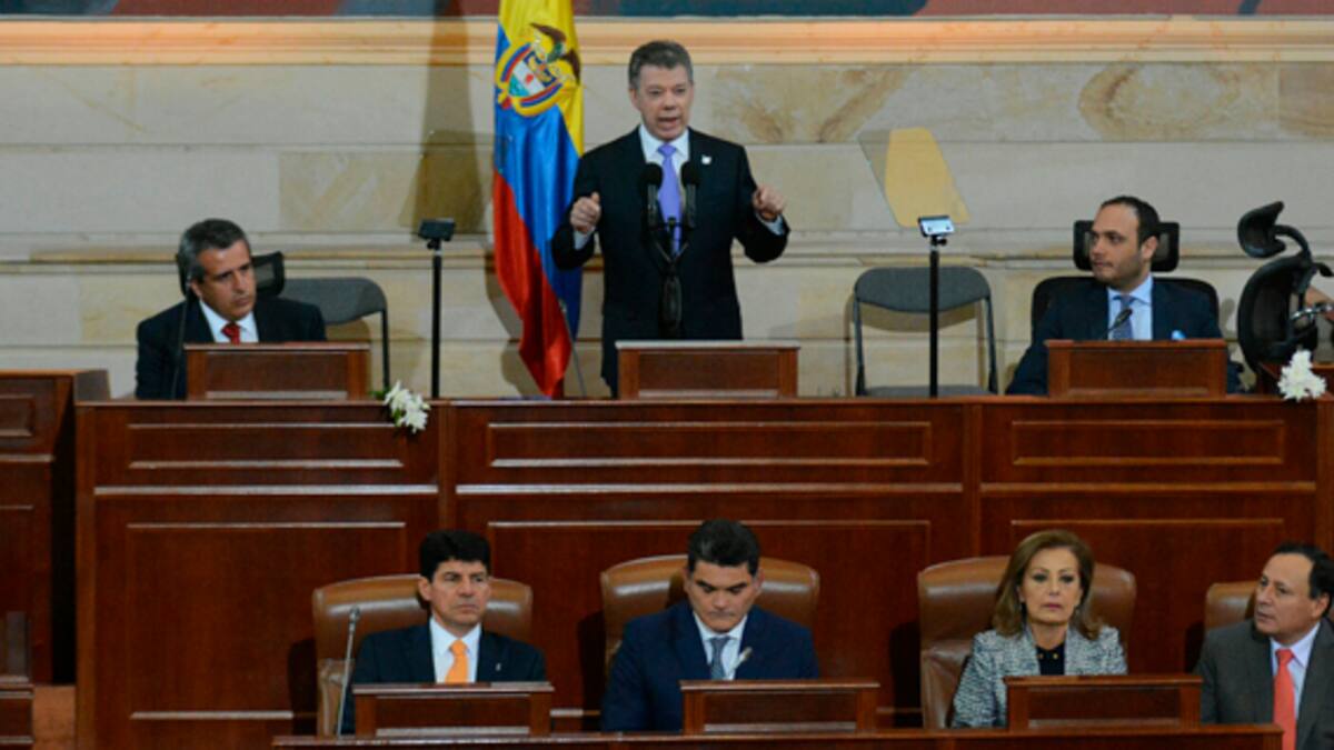 Y rebautizó el Parlamento: '(…) porque este Congreso de la Paz será ahora el Congreso del Posconflicto', recordando 'la firma –hace menos de un mes– del acuerdo sobre el cese al fuego y de hostilidades bilateral y definitivo, y sobre el procedimiento y cronograma para el desarme de la guerrilla', que, dijo, 'ha sido la mejor noticia en mucho tiempo para los colombianos'.