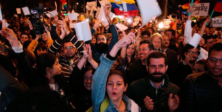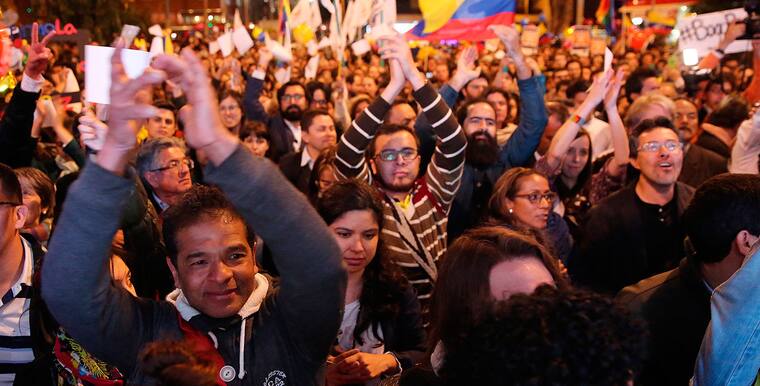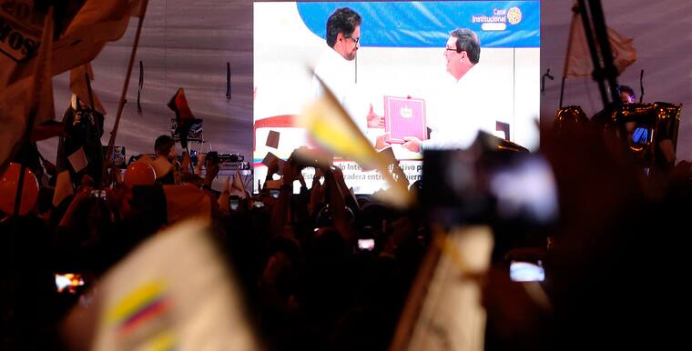 Tan pronto se mostró en una pantalla gigante instalada en el Parque de los Hippies de la capital la imagen de los negociadores rubricando el acuerdo de paz, la multitud estalló en júbilo al grito de "sí se pudo", con la confianza en que lo pactado será ratificado por la población en un plebiscito que se celebrará el próximo 2 de octubre.