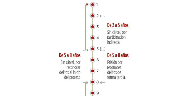 Habrá sanciones ordinarias. Por último, se disponen las 'sanciones ordinarias', reservadas para cuando no exista reconocimiento de verdad y responsabilidad. También estas consisten en pena de prisión, pero por un tiempo mucho mayor: de 15 a 20 años.