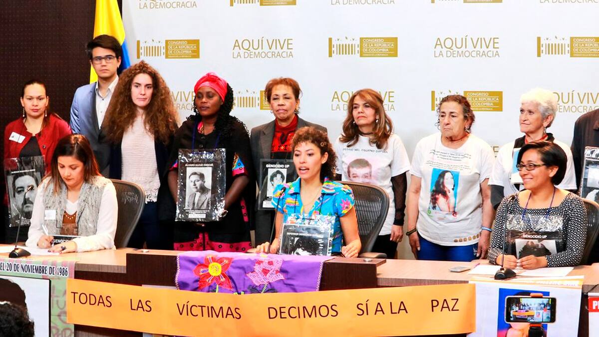 A través de una rueda de prensa realizada ayer en el salón de prensa del Congreso de la República, representantes de distintas organizaciones de víctimas hicieron un llamado al legislativo para que asuma con responsabilidad la implementación el proceso de paz, de tal forma que esta no se convierta en un 'botín electoral'.